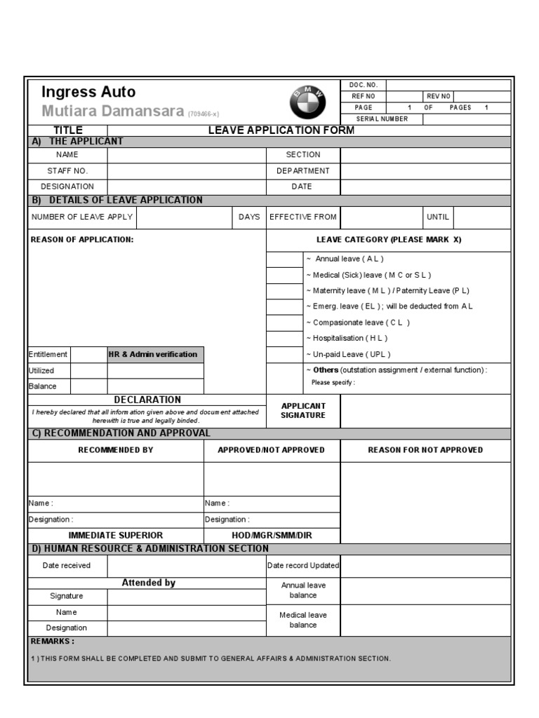 Doc Annual Leave Request Form Allan Ongaya Academia Edu from 0.academia-photos.com The elements of a leave application form how to make an excellent leave application form faqs who is the target. 50+ sample leave form templates what are leave application forms? Keep it simple when filling out your leave application form and use pdfsimpli. As an example of hr forms, your leave application form should be created in a professional manner. Larger employers who use earned leave pro forma applications typically make a pdf of the form available on their website. The parental leave application form is required for the care of the newborn baby and the application is important for this purpose. Fill, sign and send anytime, anywhere, from any device with pdffiller. Below are some of the things that never.